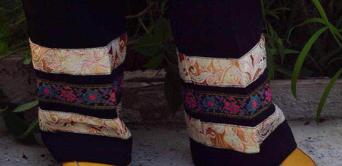 傳統(tǒng)服飾是由布依族傳統(tǒng)工藝制作而成,其上衣以藍色打底的斜襟衣和白色打底的圍腰為主,上衣對襟處繡有花草圖案作為裝飾,圍腰上部也繡有花草圖案作為描邊。下身則以黑色長褲和灰色長褲為主,衣飾上所有的雕花刺繡圖案全部出自之手。多從市場上購買。其上身對襟處和圍腰上部也繡有花紋圖案,但是這些花紋圖案則是現(xiàn)代機器之功,下身以黑色打底的長褲為主,在褲腳處繡有花草圖案,上板村布依族女性們還有一個習(xí)慣,就是不管是穿戴傳統(tǒng)服飾還是現(xiàn)代服飾都會戴有黑色圓帽。