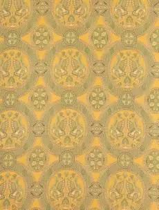 作品紋樣取材于漢、唐、宋、明、清時(shí)代的傳統(tǒng)蜀錦紋樣,采用的原料為純天然綠色纖維——染色桑蠶絲和粘膠棉漿絲。該織錦充分體現(xiàn)出蜀錦面料的色彩艷麗與富麗華貴。