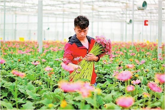 園區(qū)工人在采摘鮮花