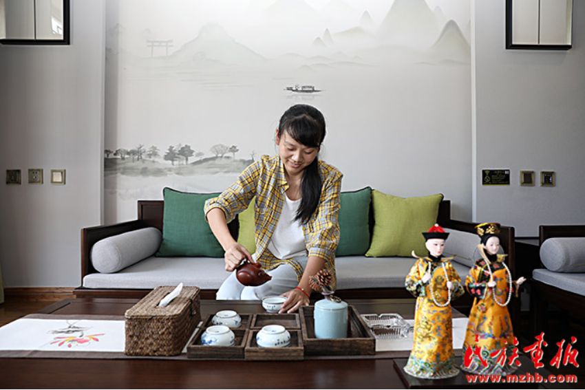 “之所以命名為‘牧馬人’,是因為草原上奔騰的駿馬能凸顯當?shù)氐拿褡逄厣?,人們都向往信馬由韁的生活?!焙阌^遠方網(wǎng)絡科技有限公司“隱居鄉(xiāng)里”項目經(jīng)理徐耀玲介紹說,牧馬人是把閑置的滿族民居重新設計改造的精品高端民宿酒店,讓游客深度體驗滿族文化。站在修葺一新的小院里,記者看到舊馬鞍、嘎啦哈等特色物件比比皆是,書房里還有《紅樓夢》、納蘭詞等書籍供游客賞閱。