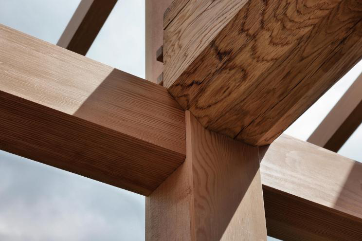 中國的木建筑構(gòu)架一般包括柱、梁、枋、墊板、桁檁、斗拱、椽子、望板等基本構(gòu)件。這些構(gòu)件相互獨立,需要用一定的方式連結(jié)起來才能組成房屋。在中國建筑中,原則上采取榫卯連接的方式,必要時也會用鐵釘。