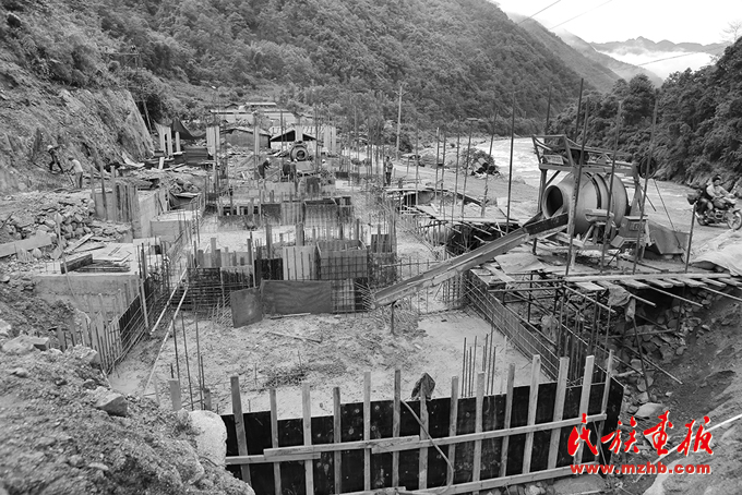 在依山而建安居房群落前獨(dú)龍族村民在翻挖、平整水田