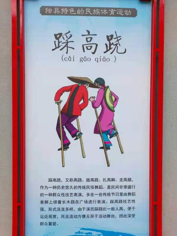 踩高蹺,又稱高蹺、踏高蹺、扎高腳、走高腿,作為一種歷史悠久的傳統(tǒng)民俗舞蹈。是民間非常盛行的一種群眾性技藝表演,多在一些傳統(tǒng)節(jié)日里由舞蹈者腳上綁著長木蹺在廣場進行表演。踩高蹺技藝性強,形式活潑多樣,由于演員踩蹺比一 般人高,便于遠近觀賞,而且流動方便無異于活動舞臺,因此深受群眾喜愛。