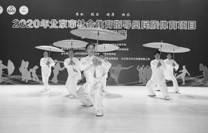 2020年北京市社會體育指導(dǎo)員民族體育項(xiàng)目交流展示賽日前在北京市民族文化交流中心舉辦,來自全市16個區(qū)的40支代表隊(duì)交流展示了民族健身操、舞龍、太極拳等項(xiàng)目。