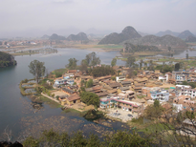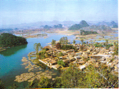 在一次學(xué)術(shù)會(huì)議上,筆者請(qǐng)教了首倡并主導(dǎo)“民族文化生態(tài)村”試點(diǎn)建設(shè)的尹紹亭教授,得知在他們首期的五個(gè)試點(diǎn)村落建設(shè)中,仙人洞村是比較成功的,于是在本項(xiàng)目的調(diào)查中,仙人洞村成為重點(diǎn)考察的對(duì)象之一?!跋扇硕匆妥逦幕鷳B(tài)村”位于云南丘北縣城西北16公里的普者黑湖畔?!捌照吆凇睘楫?dāng)?shù)匾妥迦瞿嵴Z,意為“魚蝦多的湖潭”。普者黑實(shí)際是由眾多湖泊、河流構(gòu)成,總面積達(dá)165平方公里,已經(jīng)開發(fā)成由5個(gè)景區(qū)、56個(gè)景點(diǎn)組成的滇東南國家級(jí)著名旅游景區(qū)。