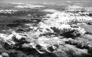 在飛機(jī)上俯瞰昆侖山雪景。新華社記者 江文耀攝