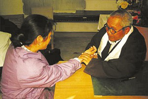 藏醫(yī)正在為患者進(jìn)行脈診