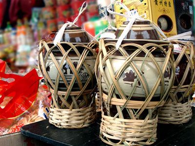 把鹽漬好的青菜削去老葉、粗皮,用甜酒、糖拌勻,再按比例加入蒜苗、蒜頭、辣椒粉、冰糖、食鹽和適量白酒,調(diào)好后分壇包裝,密封貯存。約兩個月后即可出廠銷售。