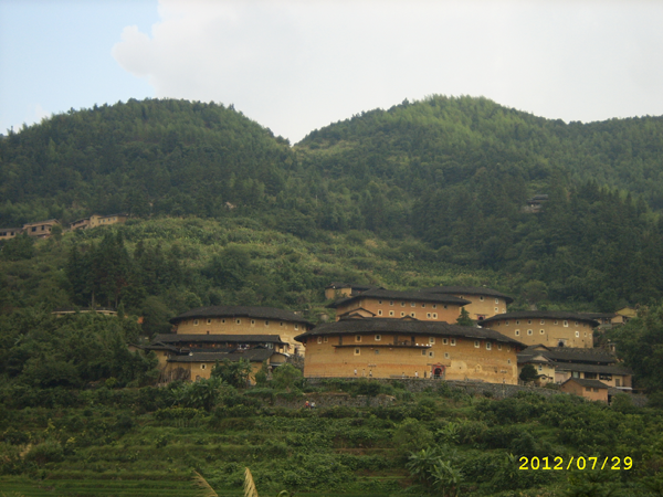 土樓和長(zhǎng)城差不多,是用糯米、石灰、蛋清和泥土混合而成的外墻,內(nèi)部是用黃木和杉木,夏可抵暑氣,冬可抵冽風(fēng),還可自動(dòng)調(diào)節(jié)室內(nèi)的溫度。