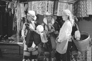 沒約人,我獨(dú)自開車從臨滄市繞道南美,才發(fā)現(xiàn)那是一次穿越。一座無名的山上仍然有遮天蔽日的森林,等我從森林里出來,拉祜族村子就在眼前了。一位騎著摩托車的女孩才十八九歲吧,趕著一大群羊,從山上回家,嘴里含著葉子,吹奏出動(dòng)聽的小曲。兩位抽著旱煙的拉祜族婦女,背著沉重的柴禾走在路上。街市并不大,十多家商鋪賣著現(xiàn)代的生活用品,幾家小餐館里擠滿了人。