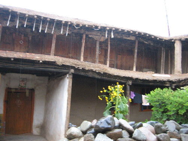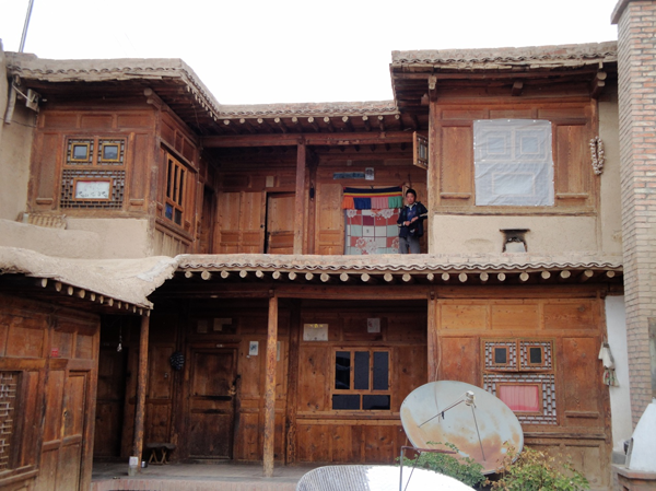 為改善狹小的寨內(nèi)空間,當?shù)鼐用窬藿硕幽窘Y(jié)構(gòu)樓房,和青海鄉(xiāng)村民居庭院寬敞的特點形成了反差。寨內(nèi)民居庭院多為四合院式,房屋為土木結(jié)構(gòu)平頂房,一般民居都有飛椽花藻之類。屋內(nèi)一般以木板作隔扇,室內(nèi)有護炕木板、護墻木板墻圍,且多雕花草于其上。房屋一般面闊三間,正面以木板隔墻并裝上木板條方格小花窗。佛堂設(shè)在二樓,佛堂所在的房屋一般都是上房,和佛堂不同向的兩邊廂房一般做臥室。院落中央一般都有豎掛經(jīng)幡的旗桿,還設(shè)有桑臺,具有明顯的藏式特點。