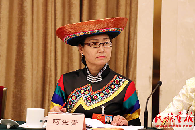 “頭戴織錦大圓帽,腰系花帶,身穿七彩袖的黑底長裙,阿生青作為人口較少民族土族的代表,這一身別致的服飾在十三屆全國人大一次會議青海團的代表中頗為亮眼。她來自青海省互助土族自治縣高寨鎮(zhèn),2016年8月,習(xí)近平總書記曾到互助縣班彥村考察異地搬遷項目,班彥村因此變得有了名氣,作為高寨鎮(zhèn)副鎮(zhèn)長,她喜歡與別人分享這個村子的故事。事實上,班彥村只是當(dāng)?shù)胤鲐毠灾挟惖匕徇w項目的樣板村,縣里諸多其他扶貧項目在近幾年也開始發(fā)力,生態(tài)旅游、特色產(chǎn)業(yè)、養(yǎng)殖扶貧等項目如今已經(jīng)依托各村實際,發(fā)展得紅紅火火,土族百姓的好日子正在翻開嶄新的一頁。