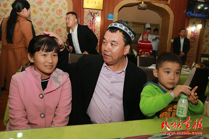 鄭州市二七區(qū)新疆美食城店主阿地力·買買提熱心公益事業(yè),他已承諾幫助漢族學生徐文婷11歲(左) 等5人直到大學畢業(yè)