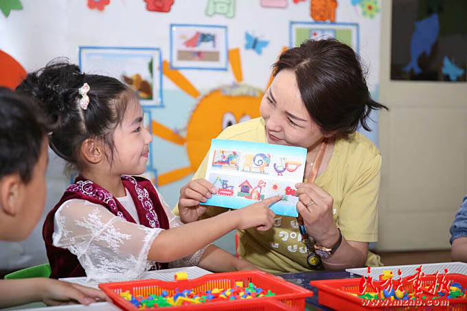 情系幼教心無悔。如今的阿合奇第三幼兒園是一個充滿團結與奉獻精神的集體,在這片天地里,古麗孜娜提·吐坎辛勤耕耘,用愛心、誠心、責任心去換取孩子的開心、家長的放心。古麗孜娜提說,“我對幼教事業(yè)充滿敬畏,看著幼兒園孩子們健康、快樂、幸福,我就覺得特別幸福。”