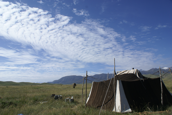 客人在進(jìn)帳篷前要把隨身攜帶的槍支、彈藥、牧鞭和生肉等取下交給主人代管。進(jìn)帳篷入座時要男左女右。當(dāng)主人請人用餐時,客人不得隨意走動。每逢虎、狗、鼠、蛇日,不得搬帳篷。