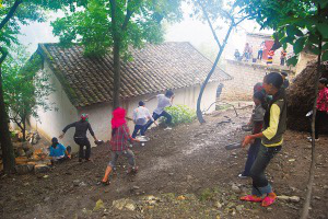 彝族人認為,清水能驅惡除邪,送走妖魔,帶來幸福,因此接親、送親都要潑水。接親這一天,新娘的姐妹組織鄰近的婦女早做好了準備,躲藏在房前屋后或墻里墻外,只等接親隊伍到來。當接親隊伍東瞧瞧,西望望,小心謹慎地走進女方家門時,一瓢瓢、一盆盆清水就會劈頭蓋臉地潑來。用水方便的地方,人們還直接接上水管射,令接親者防不勝防,一個個被淋成了“落湯雞”。他們有時也會趁人不備,搶過女方手中的水桶或水盆反擊。在一片歡鬧聲中,姑娘們不斷展開攻勢,越“戰(zhàn)”越猛,而接親的小伙子們則難以招架。