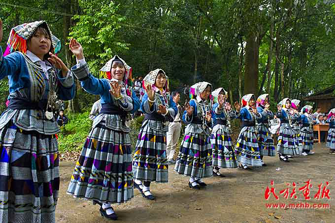 在“寨老”敲響的銅鼓聲里,男人們揮舞著有力的手臂,舞動(dòng)著彪悍的動(dòng)作;姑娘們踏著歡快的鼓點(diǎn),擺手扭腰跳起優(yōu)美的舞蹈;孩子們像林中的小鳥(niǎo),嘰嘰喳喳地在人群中歡呼雀妖;寨里的老人們坐在場(chǎng)地中央,盡情地享受著包谷美酒和美食。