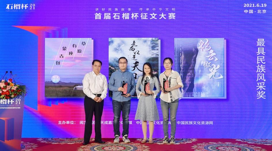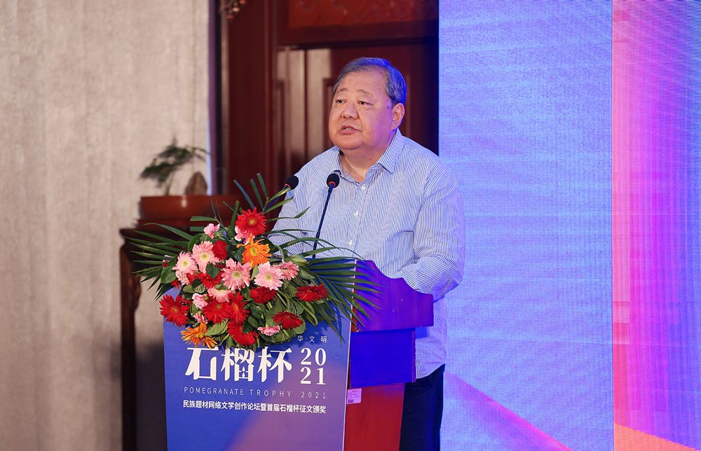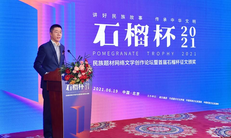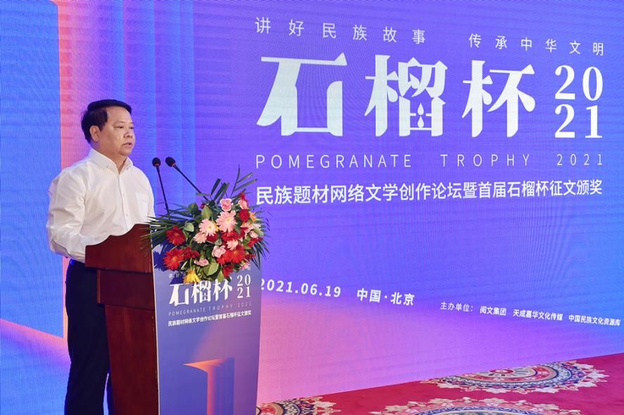 6月19日,民族題材網(wǎng)絡(luò)文學(xué)創(chuàng)作論壇暨首屆石榴杯征文大賽頒獎典禮在京舉行。作為國家民委主辦的“中華民族全家?!毕盗谢顒又唬讓檬癖魑拇筚惖玫搅藝颐裎幕麄魉竞椭袊贁?shù)民族文化藝術(shù)促進(jìn)會的指導(dǎo)與支持,由閱文集團(tuán)聯(lián)合天成嘉華文化傳媒、中國民族文化資源庫、中國民族文化資源網(wǎng)共同舉辦。本屆大賽以“講好民族故事 ,傳承中華文明”為主題,涌現(xiàn)出眾多弘揚(yáng)民族精神、表達(dá)文化自信、傳播正能量的作品。經(jīng)過專家推薦及嚴(yán)格評審,《草原有座蒙古包》、《走西口之天山行》、《彩云微光》等三部作品獲“最具民族風(fēng)采獎”,《神藏》、《歡想世界》、《爛柯棋緣》、《時(shí)光和你都很美》、《恰似寒光遇驕陽》、《黎明醫(yī)生》、《暖君》、《驚雷》、《大訟師》、《消防英雄》等十部作品獲“優(yōu)秀作品獎”。所有獲獎作品都將收錄入中國民族文化資源庫。中國作家協(xié)會副主席、書記處書記吉狄馬加表示,本屆石榴杯大賽是在黨和國家長期以來堅(jiān)持的對民族文化、少數(shù)民族作家創(chuàng)作和民族題材創(chuàng)作的大力扶持下,依托網(wǎng)絡(luò)文學(xué)平臺,將文學(xué)作品與影視作品改編、游戲、動漫產(chǎn)品制作結(jié)合起來,探索的一條發(fā)展民族文化的新路,具有開創(chuàng)意義。