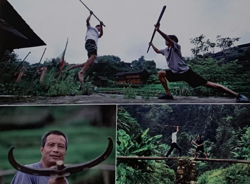 貴州天柱縣甘溪侗寨人人自幼習武,身懷絕技,家里的鋤頭、釘耙、板凳、柴刀等都是他們防身的武器,其地域流行的六家拳、洪門棍套路更是享譽天下。月牙鏜、鐵尺都是獨具特色的武術器械。