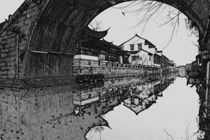 畫一條清澈的、緩緩流淌的河流。在河的上面,長(zhǎng)出一座彎彎的石拱橋,半圓形的橋洞倒映在河面上,剛好與倒影連成一個(gè)滿月一樣的圓,水長(zhǎng)流而“月”恒在,恒久地印在那清澈的水面上。給橋取一個(gè)好聽(tīng)的名字,叫作玉津橋。月圓之夜,在這河里有兩輪玉璧,一輪皎潔,是月亮的影子;一輪青幽,是橋的影子。在河的兩岸,西岸上長(zhǎng)出一排楊柳,婀娜飄拂;東岸上長(zhǎng)出一排楊樹,筆直沖天。在楊樹的外面長(zhǎng)出一條路,沿著河水流淌的方向自北向南地行走。在路的外面長(zhǎng)出一片田野,在田野里長(zhǎng)出年復(fù)一年的莊稼。在田野的中間,長(zhǎng)出一簇一簇的村莊。在村莊的上面,長(zhǎng)出年復(fù)一年的炊煙。