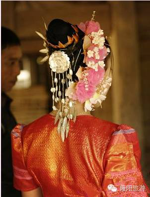男方家也得請客。新郎啟程去接新娘子,家里馬上就殺雞做飯,新郎新娘回來后要吃染成黃色的糯米飯和雞肉,表示往后生活美滿幸福,像糯米飯一樣結(jié)成團永不分開。晌午時分,是新郎家待客最熱鬧的時候,幫廚的人擺上各種酒菜,親朋寨鄰老老少少全坐到天井里,歡歡鬧鬧地吃飯。最后,客人們有的陸續(xù)走了,愿留下的湊攏幾桌,邊喝酒邊暢談,一直要吃到第二日還不歇。