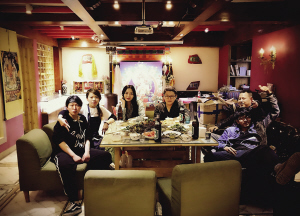 民宿不提供餐食,但設(shè)有開放式廚房,天南海北的有緣人齊聚于此,各顯身手,呈現(xiàn)出一大桌美食,對酒當(dāng)歌,歡笑晏晏,民宿的隨性,讓人恍若回到家里一樣溫暖、親切。