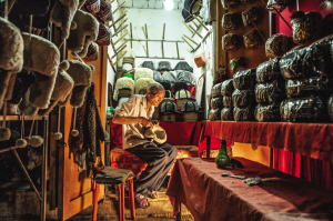 阿布都瓦克·吐?tīng)柡槔先?,今?3歲,他是阿熱亞路帽子巴扎的手工藝人,店里出售的羊羔皮帽都是他親手制作的。1998年見(jiàn)到他的時(shí)候,他的鋪?zhàn)臃浅:?jiǎn)陋,街巷四周塵土飛揚(yáng)。在巴扎工作近30年,老人見(jiàn)證了喀什古城的發(fā)展變遷。