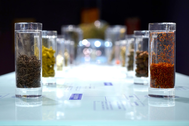 展覽還用特別的篇幅呈現(xiàn)了民族服飾對天然材質(zhì)的取用。天然,這種被視為極致的現(xiàn)代奢華,只不過是傳統(tǒng)社會中人類曾經(jīng)習(xí)以為常的日常生活狀態(tài)。那些在當(dāng)代被念念不忘、不斷回歸的傳統(tǒng)工藝表明,傳統(tǒng)依然活著,并且具有強大的生命力。