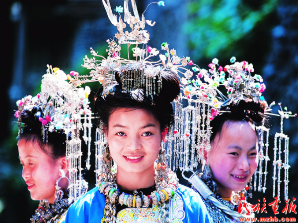 過苗年的時(shí)候,貴州苗族未婚少女穿戴起了體現(xiàn)家庭財(cái)富的銀飾