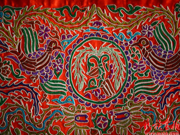 黎錦、壯錦、艾德萊斯綢、氆氌、苗繡、羌繡、馬尾繡、蠟染、扎染……當(dāng)我們面對(duì)這些精美的作品時(shí),我們很難想象到這些東西是由少數(shù)民族婦女的雙手,使用最簡(jiǎn)單的紡車、織機(jī)等工具創(chuàng)造出來的,她們靠口傳心授把技法熟記于心,大自然是她們模仿的對(duì)象,她們制作出的服飾不僅色彩豐富,而且還將民族發(fā)展的歷程紀(jì)錄在了服飾上。很多少數(shù)民族沒有自己的文字,對(duì)自己民族歷史的記載除了口口相傳以外,他們把一些提煉升華后的符號(hào)或織或繡或染到服飾之中。苗族的服飾文化在這一點(diǎn)上極其突出。苗族沒有文字,苗族的歷史文化是靠口頭文學(xué)和服飾圖畫藝術(shù)來表達(dá)的。苗族老人對(duì)苗族少年講述民族歷史時(shí),常指著服飾上的各色圖案一一道來。苗族服飾再現(xiàn)歷史的功能,成為苗族傳世的“無字史書”。