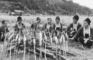 廣西三江侗族自治縣舉辦高山稻魚文化節(jié),當(dāng)?shù)氐某檀?、良口、富祿等鄉(xiāng)鎮(zhèn)以稻田抓魚、烤魚、風(fēng)情表演等活動,吸引游客前往體驗(yàn)原汁原味的侗鄉(xiāng)稻魚文化,樂享金秋豐收喜悅。近年來,該縣傾力推進(jìn)“種稻養(yǎng)魚”特色產(chǎn)業(yè),將傳統(tǒng)優(yōu)勢轉(zhuǎn)化為資源優(yōu)勢,并大力發(fā)展生態(tài)鄉(xiāng)村游,推銷高山生態(tài)健康食材,使群眾脫貧增收。圖為當(dāng)?shù)厣贁?shù)民族婦女在該縣富祿苗族鄉(xiāng)富祿村稻田內(nèi)烤魚。