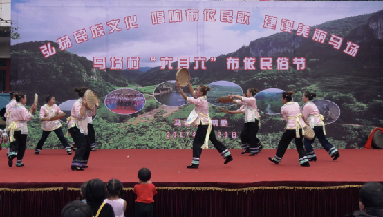 祭祀完成后,當?shù)氐哪信仙俅┲约旱拿褡宸?,興高采烈地為客人表演極具民族特色的歌舞。連周邊的苗族同胞也來為布依族節(jié)日慶賀,登臺表演共敘友誼。一些村民們自發(fā)性地登臺參與演出,雖然質(zhì)樸卻不失誠意。