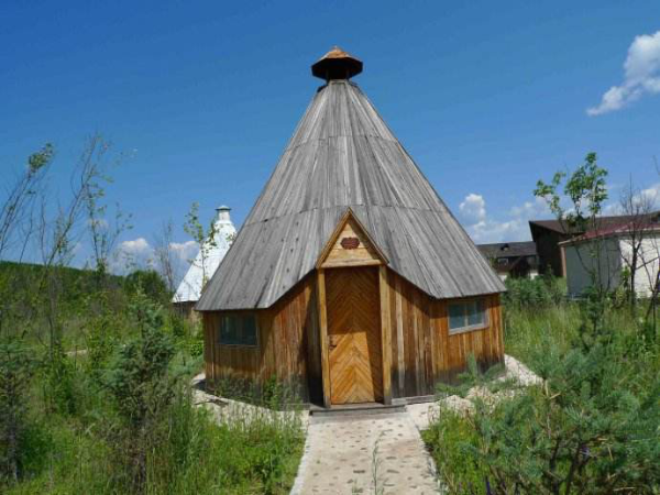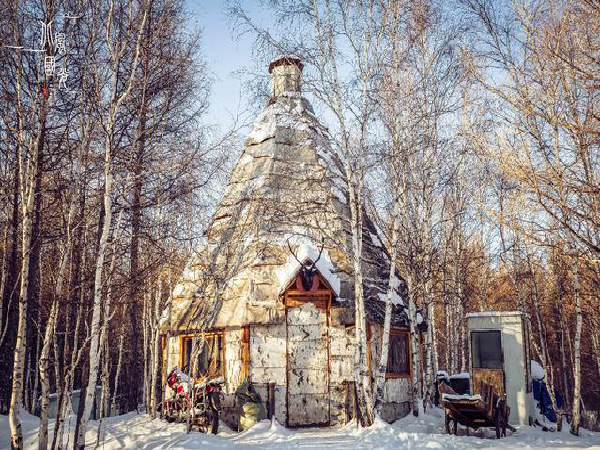 “撮羅子”又稱“斜仁柱”或“撮羅昂庫”,是鄂溫克以及鄂倫春、赫哲等東北狩獵和游牧民族的一種圓錐形“房子”。“撮羅”是“尖”、“昂庫”是“窩棚”?!靶比省笔恰澳緱U”,“柱”是“屋子”。把兩種名稱的意思合起來,就是“用木桿搭起的尖頂屋”,這正是“撮羅子”最主要的特征。
