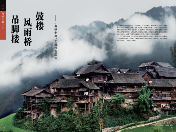 建筑是一部凝固的歷史。“南嶺走廊”上,層巒疊嶂,溪流縱橫,雨水充沛,森林密布。生活在這里的苗族、侗族、瑤族、布依族、壯族等少數民族,在千百年的勞動生產實踐中根據當地的地形、氣候、建筑材料、生活習慣等,不斷總結經驗,創(chuàng)造性地修建了獨具地方特色的吊腳樓等民居,以及風雨橋、鼓樓等公共建筑,這些建筑在展示我國傳統(tǒng)建筑文化多樣性的同時,也豐富了我國傳統(tǒng)建筑文化的內容,成為不可缺少的組成部分。