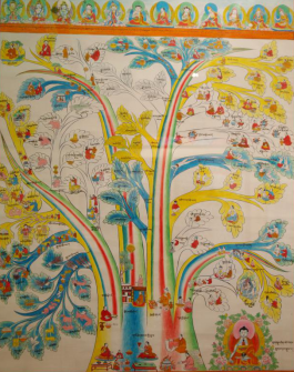 “唐卡”也叫“唐嘎”、“曼湯”,系藏語(yǔ)譯音。唐卡的起源,至今沒(méi)有史料給予精確的記載。據(jù)藏史記,兩千多年前在西藏修建的第一座宮殿——雍布拉宮的墻壁上就繪有壁畫(huà),由此說(shuō)明唐卡的雛形是源于壁畫(huà)。有的學(xué)者認(rèn)為,最早的唐卡是繪制在獸皮上,它起源于牧業(yè)文明的雅礱文化時(shí)期。唐卡可分為兩大類(lèi),一類(lèi)是用絲絹制成的唐卡叫“國(guó)唐”,另一類(lèi)是用顏料繪制的唐卡叫“止唐”。常說(shuō)的80幅醫(yī)學(xué)唐卡即“止唐”中的一種,全稱(chēng)為彩色繪畫(huà)唐卡。彩繪唐卡是依據(jù)《四部醫(yī)典》這部巨著,在公元1730年五世達(dá)賴(lài)授意第司·桑結(jié)嘉措組織藏區(qū)著名醫(yī)學(xué)家、繪畫(huà)大師通過(guò)對(duì)尸體解剖、藥材實(shí)物考察,以科學(xué)態(tài)度整理繪制的,又被稱(chēng)為《四部醫(yī)典系列掛圖》,掛圖的繪制使《四部醫(yī)典》這部博大精深的醫(yī)著史書(shū)簡(jiǎn)明易懂。西藏自治區(qū)藏藥廠的陳列室藏這珍貴的歷史資料——醫(yī)學(xué)唐卡,幾百年過(guò)去了,唐卡色彩依然明亮艷麗、工筆細(xì)膩、活靈活現(xiàn),栩栩如生。繪制唐卡的原料全部是用金、銀、珍珠、瑪瑙、珊瑚、松石、孔雀石、朱砂等珍貴的礦物寶石和藏紅花、大黃等天然植物做顏料制作而成,使唐卡有著非常高的純度和穩(wěn)定性。第司·桑結(jié)嘉措完成的唐卡有79幅,加附由第司·桑結(jié)嘉措親筆題詩(shī)加蓋印章的一幅歷代名醫(yī)圖,組成“80幅唐卡”。80幅唐卡,從藥王及藥王城(藏醫(yī)學(xué)基礎(chǔ)理論的建立),人體生理病理、診斷、治療的樹(shù)喻學(xué)說(shuō),病因、癥狀和分類(lèi),藏藥的藥物理論和分類(lèi),防病、診斷和治療、養(yǎng)生方法, 生動(dòng)形象地反映了藏醫(yī)藥學(xué)發(fā)展的進(jìn)程和偉大實(shí)踐。藏醫(yī)彩繪唐卡除了有極高的教學(xué)價(jià)值外,還有很高的民族學(xué)、歷史學(xué)、佛學(xué)及繪畫(huà)學(xué)價(jià)值,是研究藏文化的珍貴資料,其卷幅之多、內(nèi)容之廣博、構(gòu)思之巧妙、畫(huà)工之精湛堪稱(chēng)世界醫(yī)學(xué)掛圖之最,是藏醫(yī)學(xué)對(duì)世界醫(yī)學(xué)的珍貴貢獻(xiàn)。詳細(xì)名目如下:
