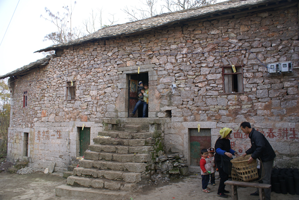 “干欄”式樓房分為木質(zhì)結(jié)構(gòu)和木石結(jié)構(gòu)兩種。木質(zhì)結(jié)構(gòu)是布依族傳統(tǒng)的住宅建筑。住宅通體全部使用木材,冬暖夏涼,適宜當(dāng)?shù)貧夂颦h(huán)境。目前在黔南和黔西南許多布依族聚居地區(qū)都還有保留。近代以來,有的地區(qū)木材逐漸稀少,木石結(jié)構(gòu)就逐漸替代了純木質(zhì)結(jié)構(gòu)的“干欄”住宅,即用石頭砌墻為壁,木料只用作柱子、椽皮和門窗,但基本的上下兩層格局未變。