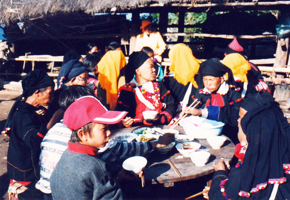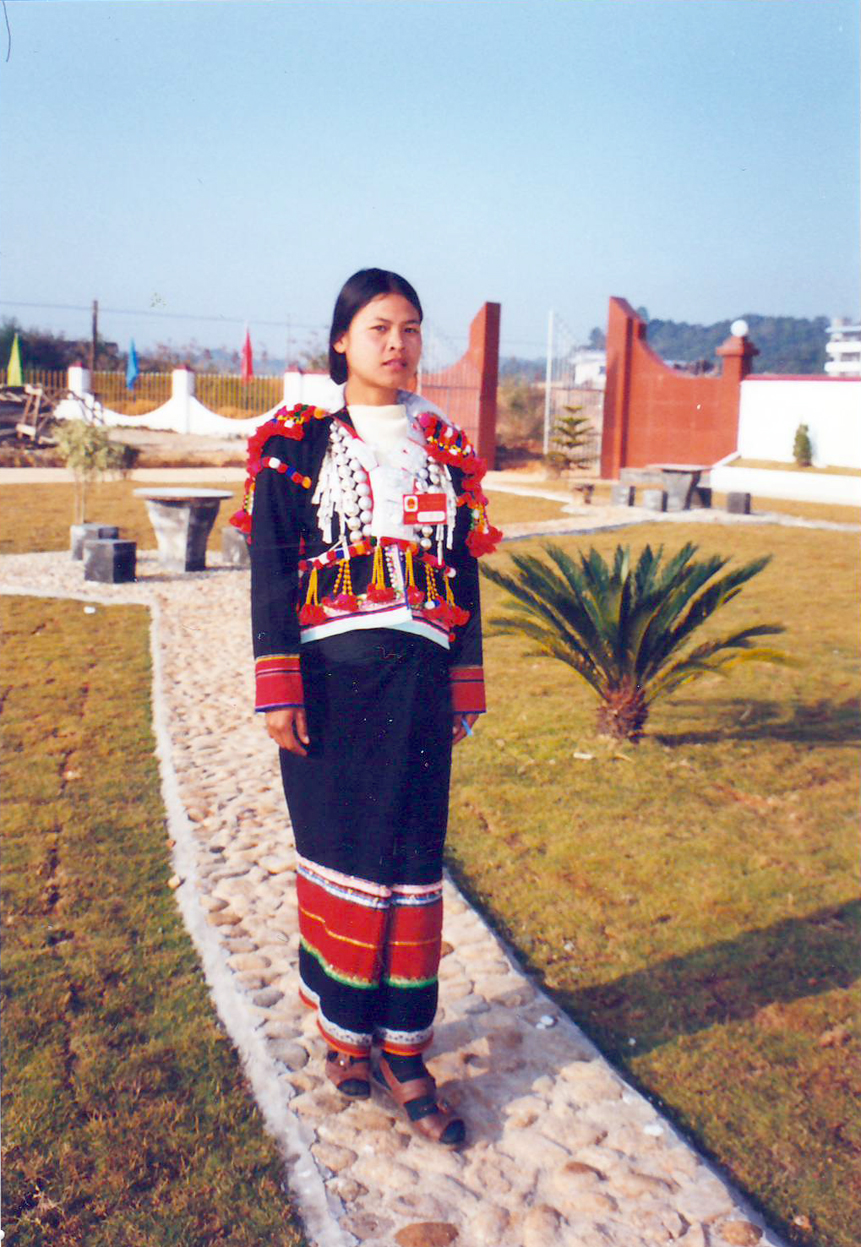 德昂族青年男女結(jié)婚前,都要先舉行認(rèn)親儀式。屆時(shí),男方的親戚如舅父、叔伯等陪同男青年到女方家,用帶去的酒肉糖茶等熱情地宴請(qǐng)女方家人,并分別贈(zèng)送禮品給女方家庭成員。認(rèn)親過后,女方就請(qǐng)卜卦人選定吉利的日子作為婚期,然后再通知男方家。男方要將彩禮于結(jié)婚前送達(dá)女方家(圖為德昂族女青年,1994)。