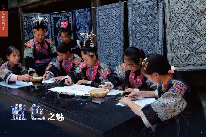 蠟染是貴州省丹寨縣、安順縣、織金縣苗族世代傳承的傳統(tǒng)技藝。 丹寨縣、安順縣及織金縣是以苗族為主體的多民族聚居區(qū),在長期與外界隔絕的艱苦環(huán)境中,這里的居民逐漸形成了自給自足的生活方式,古老的蠟染技藝因此得以保留下來。按苗族習俗,所有的女性都有義務傳承蠟染技藝,每位母親都必須教會自己的女兒制作蠟染。所以苗族女性自幼便學習這一技藝,她們自己栽靛植棉、紡紗織布、畫蠟挑秀、浸染剪裁,代代傳承。在此狀況下,這些苗族聚居區(qū)形成了以蠟染藝術(shù)為主導的衣飾裝束(以上三照片由劉軍提供)。