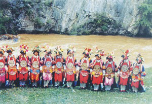 頌藥仙活動各村為陣,是一項以傳授藥物知識和防病方法為主題的歌舞活動。早早吃過晚飯后,人們集中到白天洗揀藥物的水邊,用青松和花草編扎的轎子抬上藥仙的肖像,敲鑼打鼓、載歌載舞,把藥仙抬到她的化身“定居”的山林中,舉行頌贊藥仙功績的儀式?;顒訄龅厮闹?,插遍各種花枝,花枝上掛滿姑娘們精繡的荷包,荷包中裝的是各種治病的藥粉。場中央燃燒著熊熊篝火,火邊供著藥仙的肖像。參加活動的人,各持兩束用藥用植物編成的“花束”,在歌頭的帶領下,眾人手舞“花束”,環(huán)篝火踏歌而舞。用動聽的歌聲,歌唱藥仙嘗百草、治疾病的故事;介紹用中草藥防病、治病的知識……踏歌接近尾聲時,人們便把手中舞耍的“花束”丟進篝火中焚燒,象征把各自身上的病疾丟盡,實際上是借焚藥草來達到消毒防病的目的。