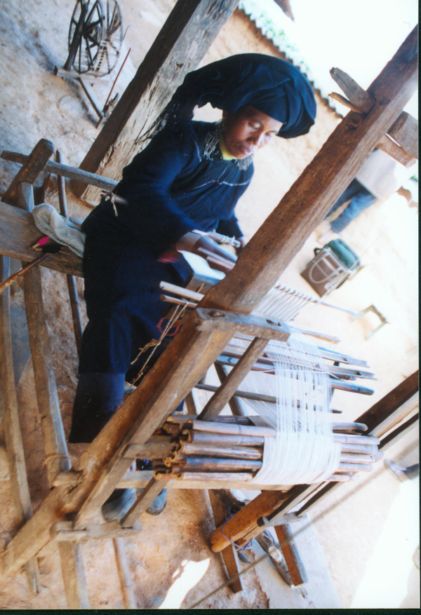(2)紡織。布朗族婦女善于紡織,多在閑暇時間進行。紡織原料有棉花、苧麻和葛線麻等數(shù)種,以紡織棉布為主。這些布用來縫制上衣、筒裙、背帶、布袋、裹腳布等。紡織品種有斜紋布、平布和彩錦。布的質(zhì)地厚實耐穿,深受本族人喜愛。有的地區(qū),人們多半使用水平織機,紡織技術更進了一步。近十年來,由于價廉物美、品種齊全的化纖紡織品大量銷售,傳統(tǒng)的紡織技術受到了沖擊,一些布朗族婦女已經(jīng)不紡紗織布。
