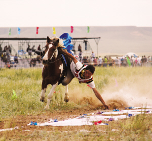 馬術表演“騎馬拾哈達”讓觀眾大飽眼福