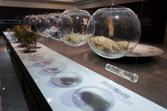 展覽還用特別的篇幅呈現(xiàn)了民族服飾對天然材質(zhì)的取用。天然,這種被視為極致的現(xiàn)代奢華,只不過是傳統(tǒng)社會中人類曾經(jīng)習(xí)以為常的日常生活狀態(tài)。那些在當(dāng)代被念念不忘、不斷回歸的傳統(tǒng)工藝表明,傳統(tǒng)依然活著,并且具有強(qiáng)大的生命力。