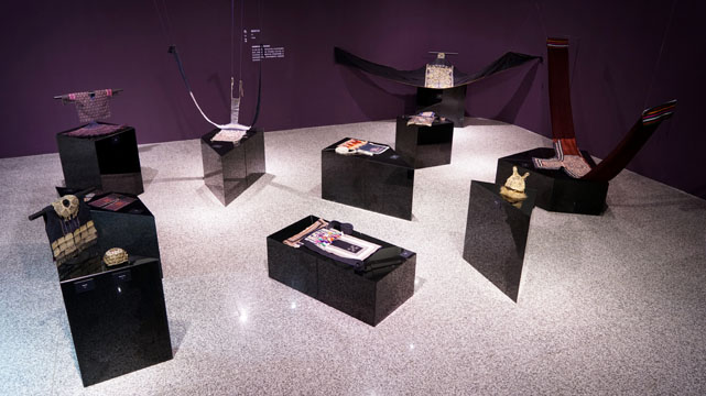 展覽呈現(xiàn)了在傳統(tǒng)服飾中,這些哲學(xué)難題被針與線在不同歷史時期交織成具象圖案和抽象符號——對于創(chuàng)世與祖先,對于人與神、天與地,傳統(tǒng)服飾成為苗、瑤、彝、侗等民族書寫與描摹的材料;服飾之上精美的紋飾,展現(xiàn)出這些民族心中神靈的形象,勾畫出民族英雄的事跡,從而建立起關(guān)于自我認(rèn)識的圖景,生發(fā)出對宇宙的敬畏。