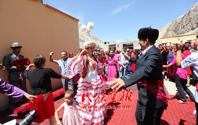 柯?tīng)柨俗巫寤槎Y上拋灑喜糖(摘自《民族畫(huà)報(bào)》)