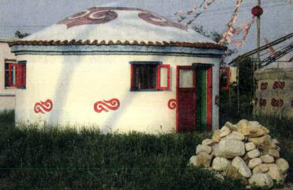 蒙古包自古以來就是蒙古族居住的帳幕,蒙古包的頂部和邊緣的裝飾以及門簾都要用貼花的刺繡方法來裝飾,地下鋪的氈子也會繡出各種各樣的圖案,使生活中的物品成為了一種富有裝飾性的藝術品。