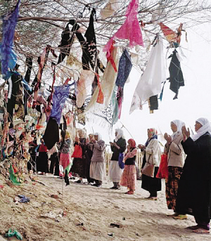 麻扎,系阿拉伯語的語音,原意為參觀(探望)之地,伊斯蘭教產生后專指“圣徒之地”。所謂麻扎朝拜,主要是穆斯林為得到圣徒佑助而進行的祈禱活動。