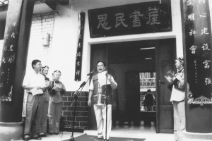 ?。}圖為王思明(中)在“思民書屋”落成儀式現場。資料圖片)