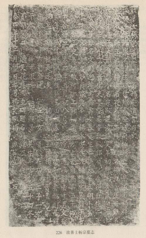 白文墓志。楊安道書(shū)。明景泰四年(1453年)立于大理喜洲西五臺(tái)峰下弘圭山上?,F(xiàn)已不存。碑文是以漢字寫(xiě)白語(yǔ)。內(nèi)容敘楊宗身世及姻親關(guān)系。對(duì)研究白族歷史、民俗、語(yǔ)言皆有參考價(jià)值。