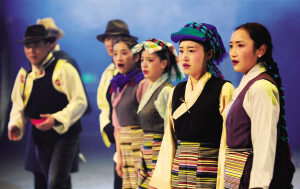 藏戲舞臺(tái)劇《藏香情》匯報(bào)演出現(xiàn)場(chǎng)。(晉美多吉攝)