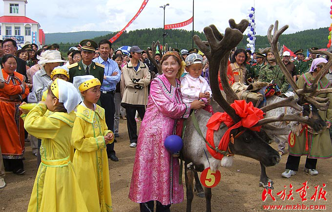 鄂溫克族人飼養(yǎng)馴鹿歷史悠久,無(wú)論男女老少都喜愛和保護(hù)馴鹿,將它們視為吉祥、幸福的象征。圖為敖魯古雅鄂溫克族鄉(xiāng)的馴鹿王比賽上的參賽馴鹿